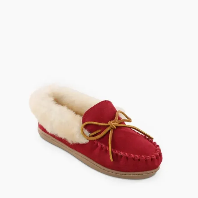 Cold weather calls for cozy comfort. Lined with genuine sheepskin and accented with a rawhide tie, this women’s collared slipper will provide the ultimate in warmth and comfort on cool winter days.