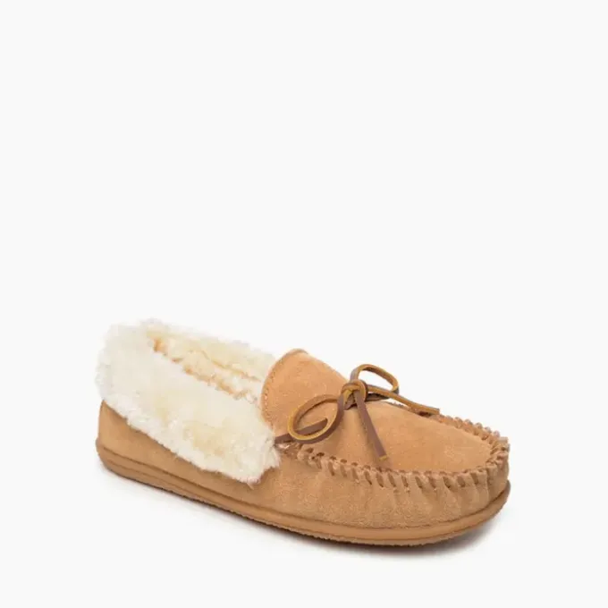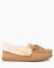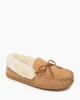 When thereās a chill in the air youāll want to sink your feet into these ultra-comfy classic moc slippers. Crafted with genuine suede and soft pile lining for quality comfort and a faux fur collar to top it all off. Leather laces tie up to keep these treats on your feet.