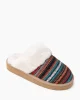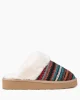 Slide into comfy cuteness. These plush slippers make a stylish statement with their distinctive patterned ribbon, all while keeping you cozy and warm with their plush pile lining.