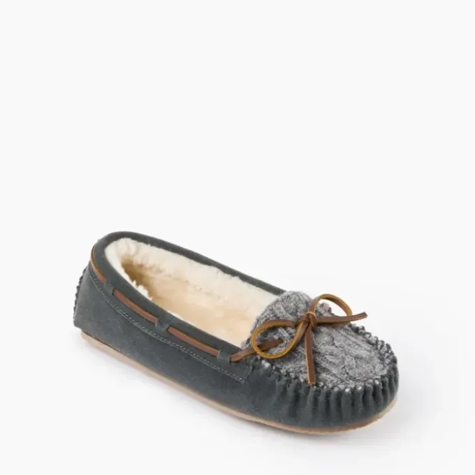 With a sweater-knit upper and plush pile lining, this pair feels like your favorite blanketâonly better. A cushioned footbed keeps every step soft, and the indoor-friendly sole is perfect for padding from room to room. Slip them on and settle into comfort that doesnât quit.
