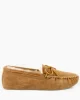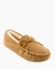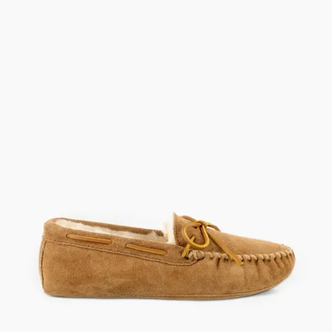 Sink into these men’s slippers after a long day and they’ll feel like blankets for your feet. The soft sheepskin lining keeps feet warm while wicking away moisture from your skin, keeping you dry and comfortable. Rawhide lacing keeps these slippers in place. The traditional softsole moccasin design makes these sheepskin slippers an absolute treat.