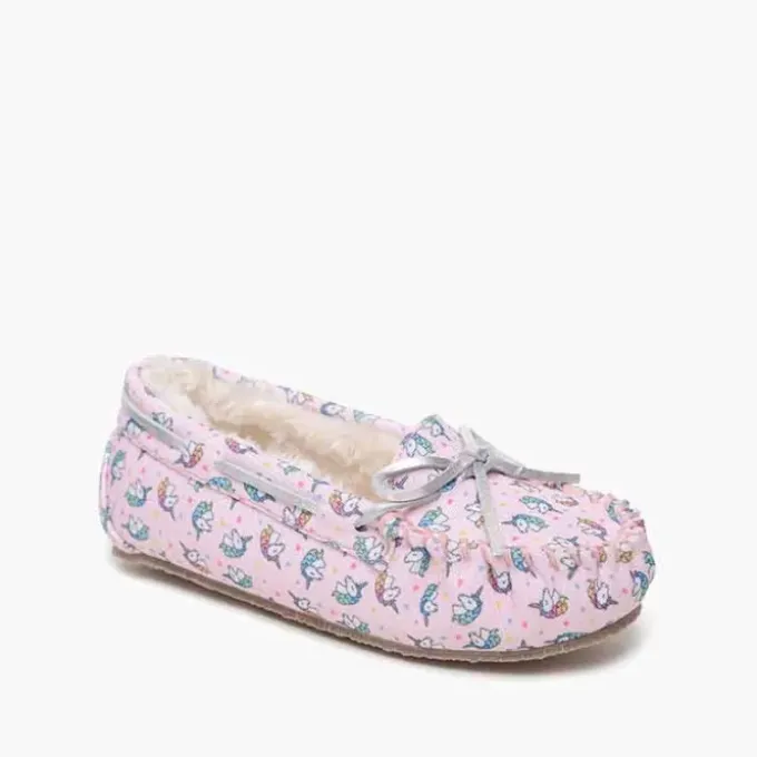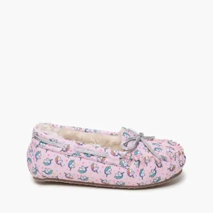 Stand out in style with bright prints while a rawhide leather lace enriches the simple design with a touch of detail. Luxurious, plush pile lining helps absorb moisture from little feet to keep them warm and the lightweight, rubber sole provides support and durability.