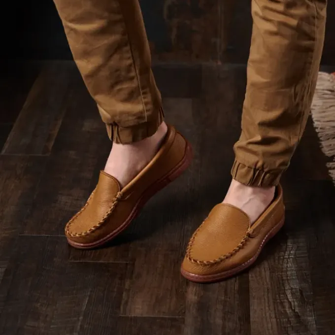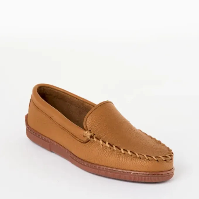Combine the stylish, timeless design of a loafer with the durable construction of thick and genuine moosehide and you get these incredible moccasins. Soft and supple moosehide provides a super comfortable feel. A lightweight rubber sole gives these menβs moccasins just enough flex. Perfect with khakis for the office or shorts or jeans for a more casual look, these versatile moccasins will be a go-to favorite for a long time to come.